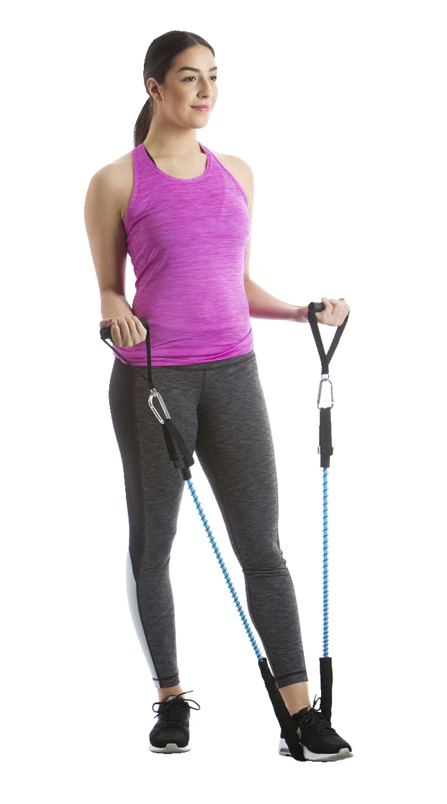 The AreoMat Elite Ex-Cord Fitness Tube Bundle has changeable Foam Grip handles for easy grapping and a soft touch. The handles can be exchanged between the three different types of cords, light, medium, and heavy. The cords have a patented structure design with external safety cord and center protective sleeve. These are great for club, rehabilitation and personal use. The cords and handles are Latex. Phthaltes, Chloride and PVC Free.