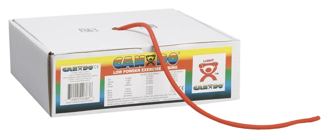 CanDo high quality latex resistive exercise tubing has been used in clinics for rehabilitation, conditioning and training since 1987. It has become a staple of many physical therapy and athletic training programs. CanDo exercise tubing is an economic solution for upper and lower body exercise. Effective when used alone, or with handles and anchors. CanDo is licensed to use the Thera-Band color sequence so resistance level is easily identified. CanDo low powder exercise tubing is made of natural rubber latex, which may cause allergic reactions. For those with latex sensitivities, there are latex-free alternative offerings of CanDo exercise tubing.