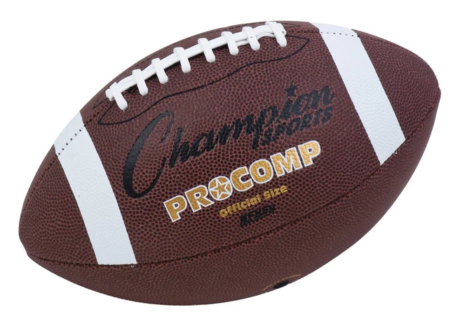 The Official Size Champion Sports Pro Comp Series Football meets High School and NCAA specifications, and is great for training and skill building. Featuring a tacky, water resistant pro composite cover, 2-ply butyl bladder, and raised laces, this football is designed to play and feel like a leather game ball while offering great value and durability. Raised laces made from tackified material, Official Size – Brown