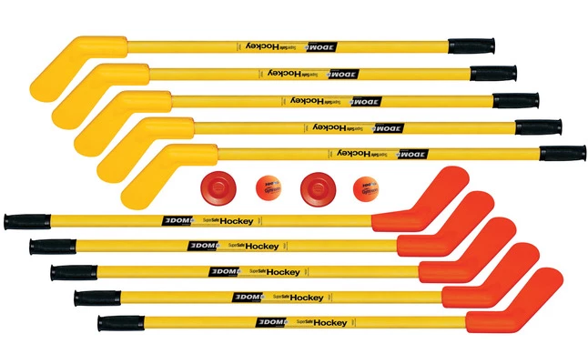 DOM SuperSafe Hockey Set, Includes 10 Sticks, 2 SuperSafe Pucks And 2 Balls, Up To Age 12