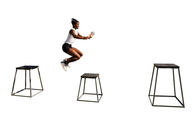 18 inch PowerMax Steel Plyobox provides one of the most common plyometric exercises. Jumping on and off plyoboxes is one of the best exercises for improving leg power, speed and strength. Box is made from 1 inch square steel tubing and the top platform is steel reinforced 1/4 inch aluminum, covered with a rubber surface for excellent traction. Anti-skid rubber pads on base corners prevent slipping and damage to floors. Latex free tapered box allows for greater stability and stacking. Sold individually.