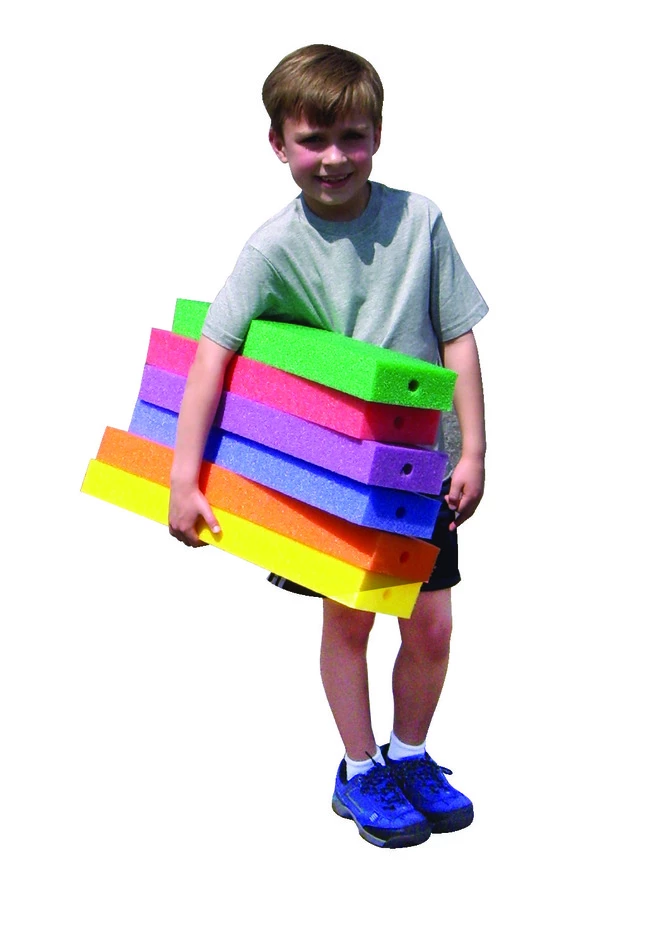 StarterBeams are light and portable. The 2 feet x 5 inch sections attach together in seconds with high impact tube plugs. Connecting the set of 6 beams included will provide 12 feet of beam. StarterBeams are 2-1/2 inches in height and are constructed of no-tear Dura-Tuff Foam for years of tough institutional use. Includes activity guide and 6 beams with one in each color: Red, Yellow, Blue, Green, Violet and Orange.