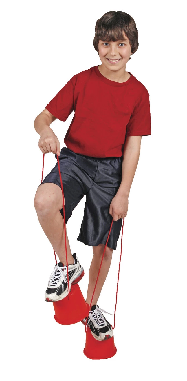 Step-N-Stilts add a fun element to balance development. New deep pebble-grain surfaces gives superior footing, plus the step-n-roll bottoms better mimic natural foot movement. Strong PVC rope hand cords can be reknotted for length adjustment. Step-N-Stilts are made of a sturdy plastic and the strand measure 4-7/8 inches. Include 1 pair. No color choice.