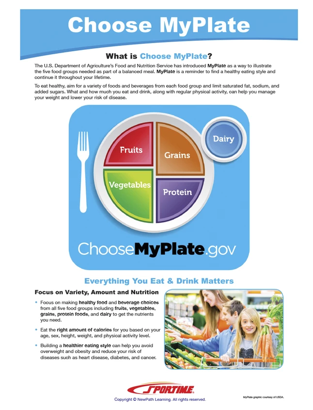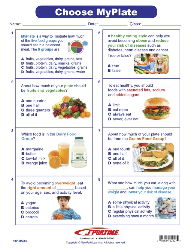 - MyPlate learning guide is an excellent nutrition education teaching aid to use alone or conjoined with other MyPlate or food-related Sportime Visual Learning Guides (sold separately)