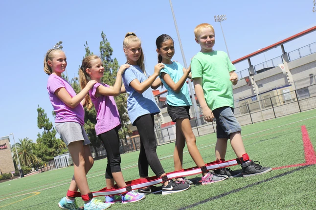 - Walking coordination activity encourages communication and cooperation skills in order to successfully walk together in a line