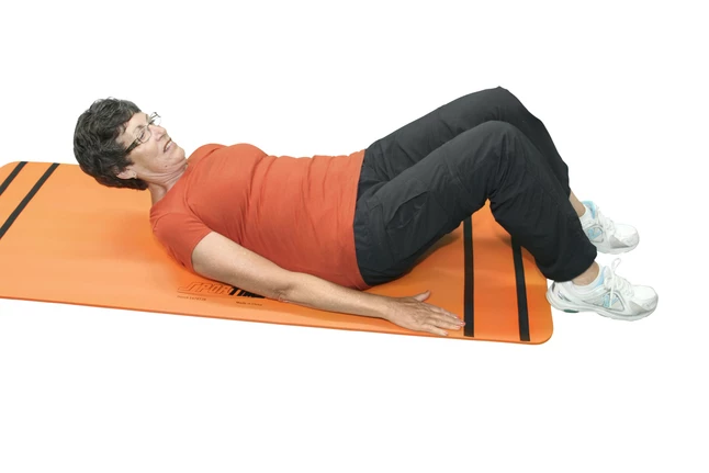 - Exercise mats with black testing strip lines indicating where fingers should touch after each crunch are great for indoor or outdoor learning of proper workout movement and techniques