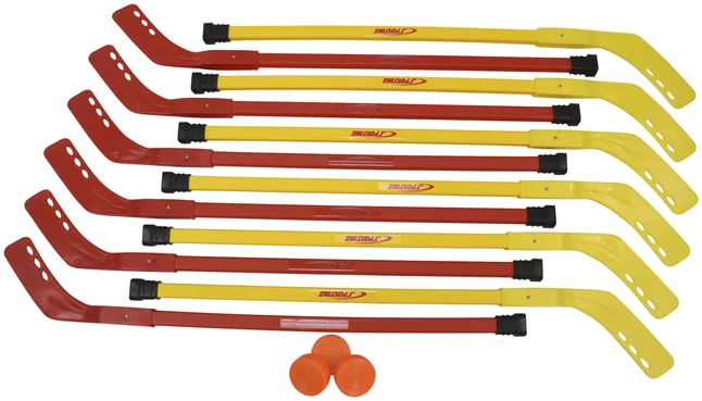 - 12 – 36 inch Floor Hockey Sticks (6 Red, 6 Yellow)