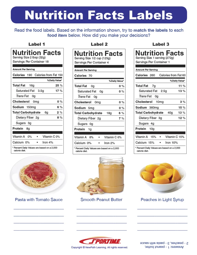 - Food labels learning guide is an excellent nutrition education teaching aid to use alone or conjoined with other MyPlate or food-related Sportime Visual Learning Guides (sold separately)