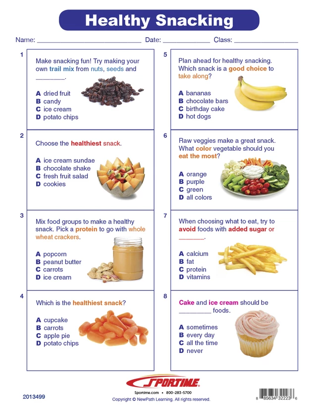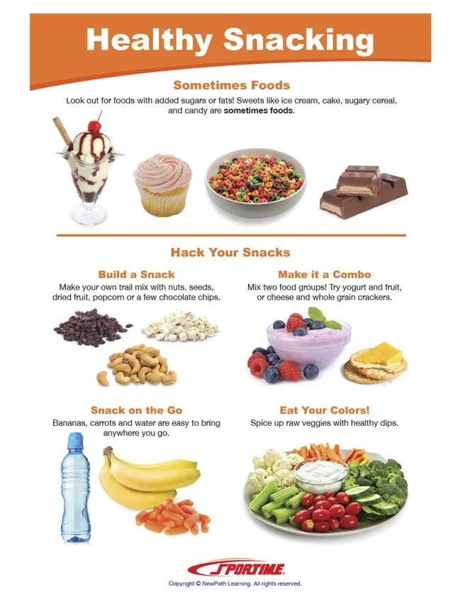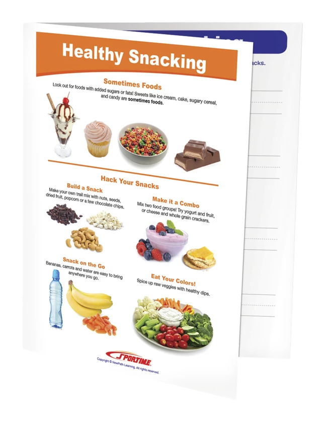 - Healthy snacking learning guide is an excellent nutrition education teaching aid to use alone or conjoined with other MyPlate or food-related Sportime Visual Learning Guides (sold separately)