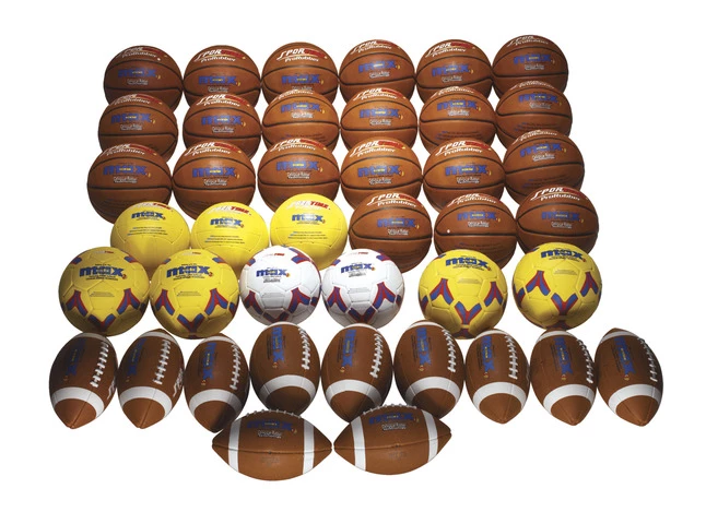 The ProRubber Ball Pack has a total of 44 balls with advanced cellular-rubber construction and superior materials that offers the most durability. Provides an assortment of high-quality sport balls for your physical education classroom, recreational games, recess, and more. Created with 133% more than the minimum butyl rubber. Built to last with top-quality nylon.