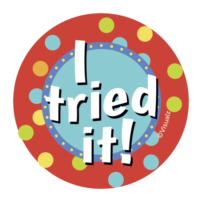 Reward adventurous eaters with I Tried It Stickers! These colorful stickers are the perfect incentive or reward for tasting and trying a new food. The stickers also serve as a great conversation starter to share with others what was sampled. 2 Inch diameter, 4 designs, 200 stickers per roll. .